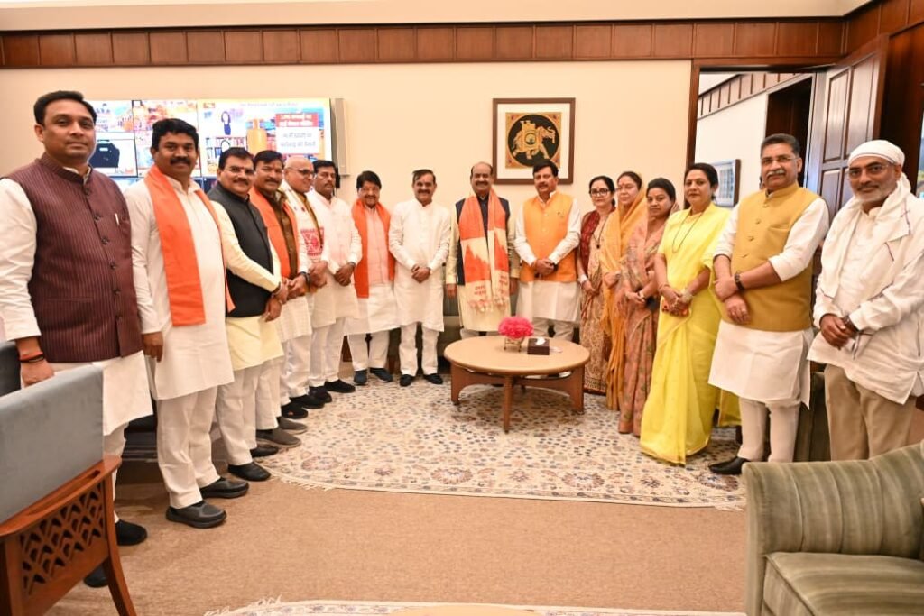 मध्यप्रदेश के सांसदों ने लोकसभा अध्यक्ष ओम बिरला से की सौजन्य भेंट। अविश्वास प्रस्ताव के संचालन पर बिरलाजी को दी बधाई शुभकामना।